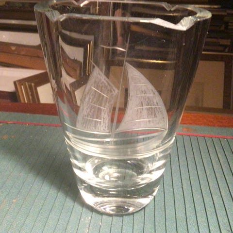 Hadeland signert krystall vase h=14 cm. Tung. Motiv Bambi Rådyr. Kunstglass