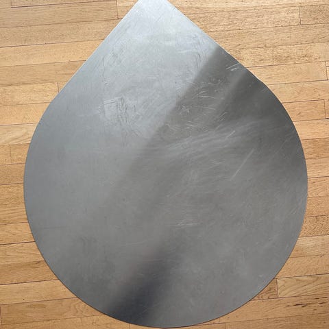 Plate til å ha under ovn. Dråpeformet og beregnet for hjørne. Platen har en mindre skade, se bilde. Må hentes.