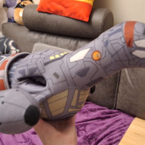 - Serenity ship plushie. Denne er 45cm/18" lang. Shuttle skipene er løse men festet med tråd, se bilde. Mangler tag, men er ikke brukt.