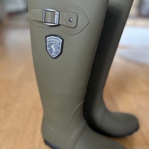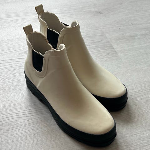 Lave støvler med litt hæl. Veldig fine på. Litt slitt bak på hælen, eller fin stand.