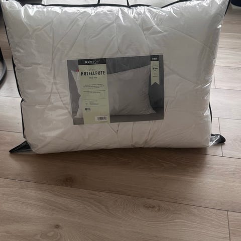 Lite brukt hotellpute fra kid, med kvit bomulls putetrekk (også fra kid)