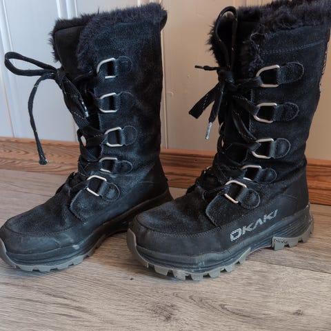 Fine Okaki vinterstøvletter. Brukt, men fine og mye bruk igjen! Går opp til litt under knæra.