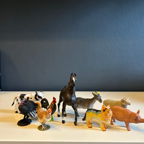 Selger en blandet pakke med dyrefigurer – perfekt for barn som liker å leke med bondegård, zoo eller magiske eventyr!