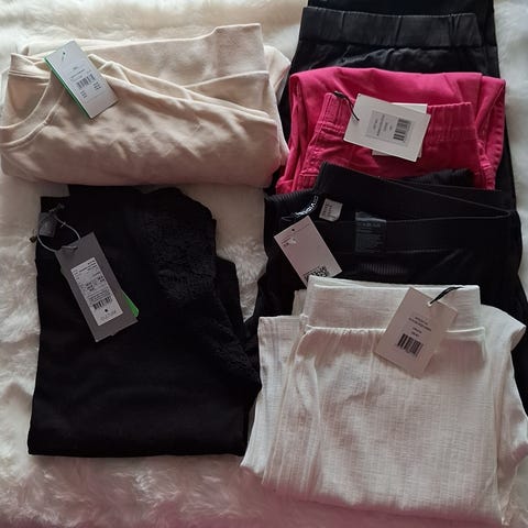 Nye jeans med hull på knærne, størrelse 29 stretch( jeans kan kjøpes separat ) andre klær i god stand, størrelsene er angitt på bildet, men den svarte jakken har en defekt (revet fôrstoff), størrelse L. Skriv i private meldinger for avklaring.