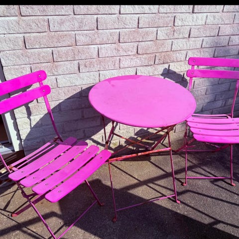 Et søtt cafesett med to stoler og bord selges rimelig,da det trenger litt kjærlighet i form av vedlikehold for å fjerne rust og andre flekker