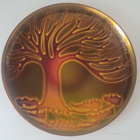 Emalje på kobber. Ø: ca.11,5 cm. I fin stand.