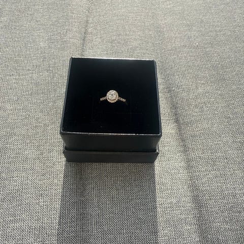 Flott hvitt gullsring m 10 små diamanter 14 karat på 2,6 gr diameter ca 14.6 mm