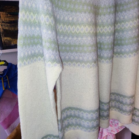 "Ingrid"-genser fra Strikkemekka med smale ermer. Strikket i tynn Merino og mohair. Ikke brukt. Røykfritt hjem. Passer M/L, spørs om man vil ha veldig oversized eller ikke. 🙂