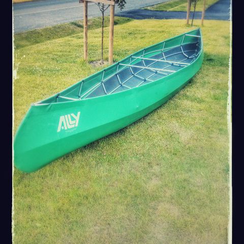 To kanoer i plast selges rimelig. Den røde er litt myk i plasten og egner seg best for barn (om den ikke stives av), mens den oransje fint kan brukes av voksne.