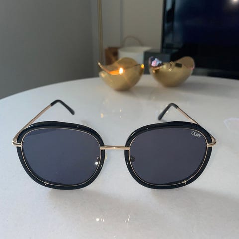 Selger stilige solbriller fra Quay Australia. Svart ramme med elegant gullkant. Pent brukt og uten skader – klare til ny eier!