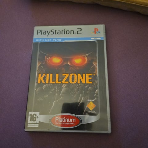 Killzone Playstation 2 Spill. Dette spillet er designet for Playstation 2-konsollen og byr på en intens skyteopplevelse. Spillet er anbefalt for spillere over 18 år og inkluderer actionfylte oppdrag i en krigssetting.