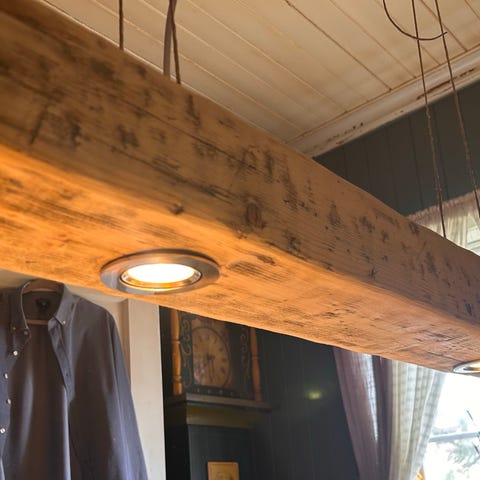 Unik, stor taklampe, i gammel ekte drivved, antakeligvis fra en gammel brygge.