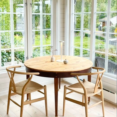 Bordet er 100cm langt, 68cm bredt og 72cm høyt