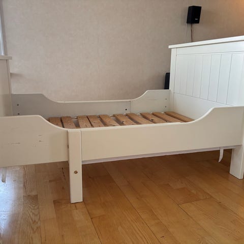 Pent brukt, koselig skuvseng selges. Den er med denne bredden på madrass ca 70 cm bred, men kan lett gjøres bredere (+ca 50 cm) Mål ellers er innvendig lengde ca 185 cm (utvendig) 170 cm. innvendig, og høyde ca 102 cm.