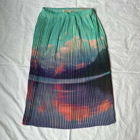 Ubrukt skjørt med print på fra Lindex med skogs motiv. 5% Elastan. str XS -S