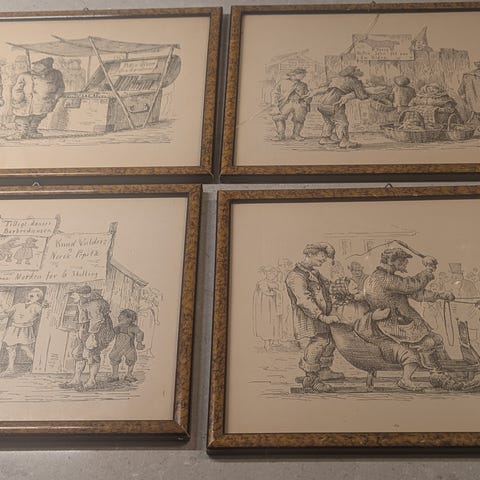Sjelden: Fyrdiriks, 30 tegninger, trykk, i glass og ramme.