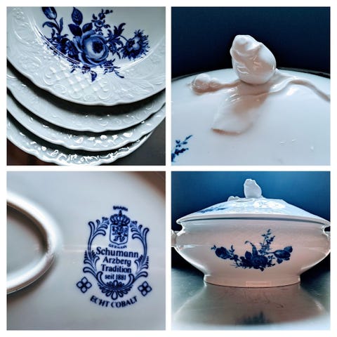 Jeg selger 11 stk asjetter Schumann Arzberg Echte Cobalt diameter 19,7 cm, lite brukt, ingen skår eller riper.