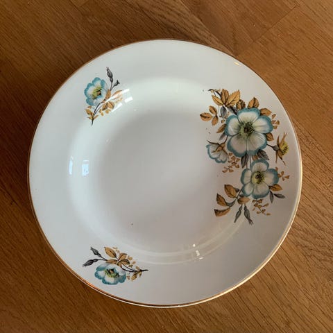 22 cm i diameter. Står stemplet B vare.. Trykket på to av rosestilkene er svakt., ellers blankt og fint i glasuren
