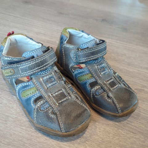 Pent brukte skinnsandaler. Brukt av to barn. Str 25. Mørk blå.
