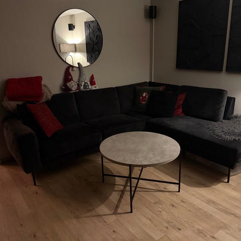 Slitesterkt velurtekstil. Enkel å rengjøre/holde ren. Må hentes.