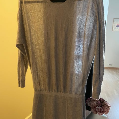 Fin, grå strikkegenser med splitt i sidene.