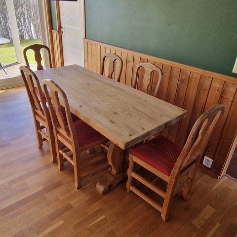 Hyttemøbler, hyttebord, vinterhagemøbler, langbord, spisebord, furumøbler, heltre, plankebord, langbenk, gårdsmøbler, bondestil, trefarget, håndverk, norsk design, tradisjon, massiv furu, spisestue, fjellhytte, tunbord.