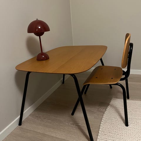 Hvit hev/senk stol følger med. Den er fra IKEA