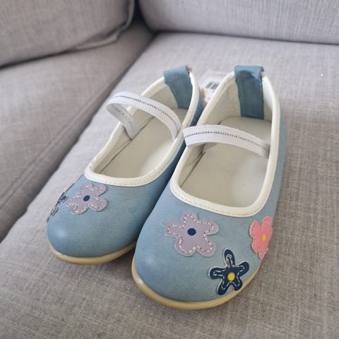 Sunniva sko med matchende solhatt, kjøpt i Dyreparken. Skoene er i str: 24 og kun brukt ved et par anledninger. Solhatten er ubrukt og har en snor slik at man kan stramme og løsne den som man ønsker.