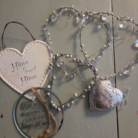 Ubrukt hjerte «Home is where the heart is» i metall med oppheng. Fint til å henge opp eller henge på en vinflaske eller lignende.