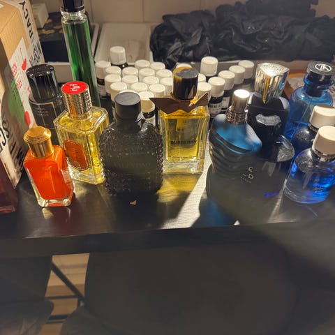 De er kjøpt på Parfymedekanteren og Dekanteren og Tuxedo, samt noen fra Finn.