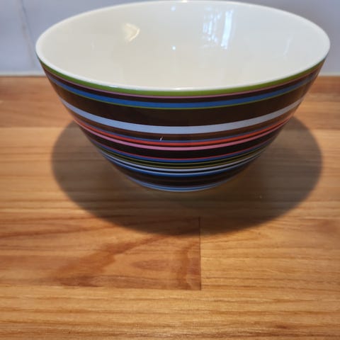 Sjarmerende serveringsbolle/dessertbolle fra Arabia Finland. Diameter 25 cm. 5 cm høy. Dekoren i bunnen av bollen er litt bleket av tidens tann, ellers ingen nagg.