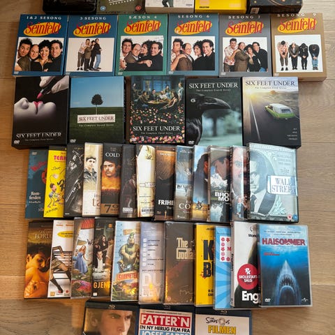 Selger diverse lydbøker på CD, 20 kr per stk.