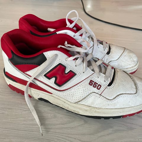 New Balance 550 i fresh rød og hvit selges billig!
