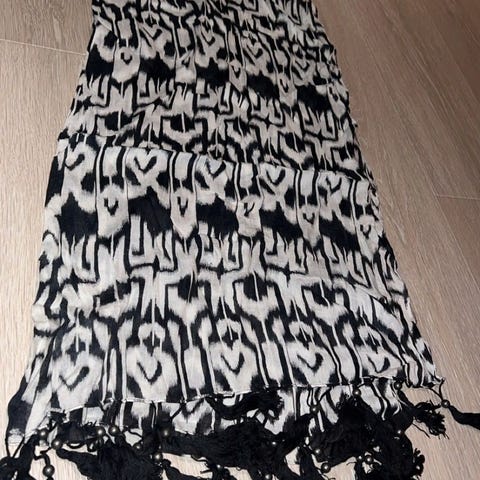 Deilig, glatt sjal/skjerf fra Thailand i grønt og grått mønster.