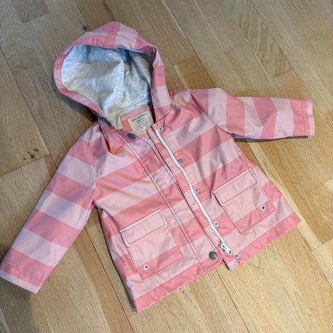 En skikkelig fin gul regnjakke fra Zara med striper inni, størrelse 86 💛