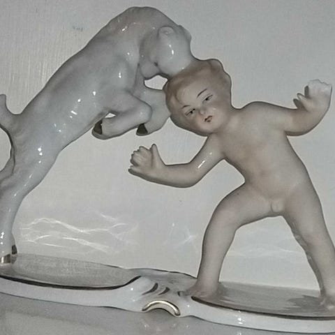 Vakker porselensrev, 1950-tallet, signert CHODZIEŻ fra Polen,ingen skader