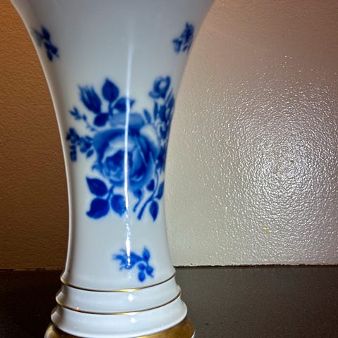 Blomstermotiv og gullkant.