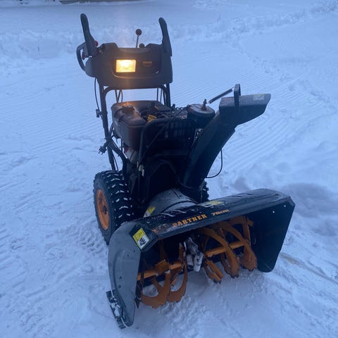 Da har jeg restauret en partner på 8 hester og 70cm freserbredde. Nytt utkasterlager, nye reimer og friksjonshjul, ny forgasser, og LED-arbeidslys. Bytta olje og plugg, og smurt opp frontsnekka. Gode knastedekk og 6 gir fremover, og 2 bakover. Kaster godt, etter at jeg har rettet opp utkasterbladene, og lakkert fronten innvendig.