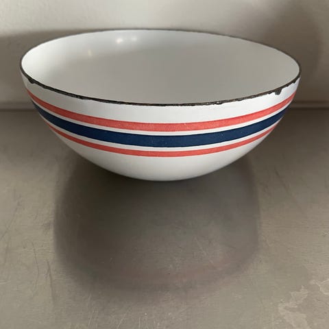 Flott lite emaljert beger i mørkeblå farge .