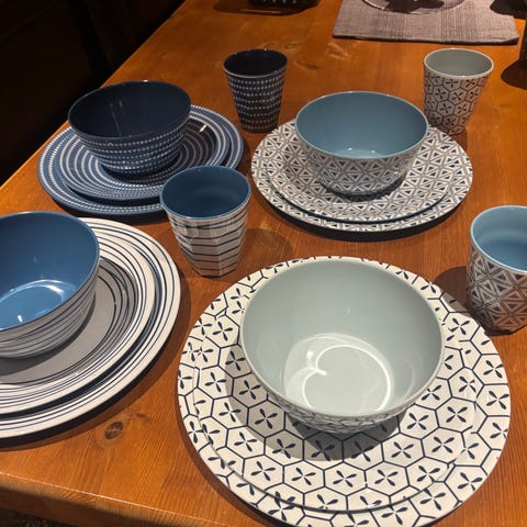 Servise i melanin til 4 stk pent brukt