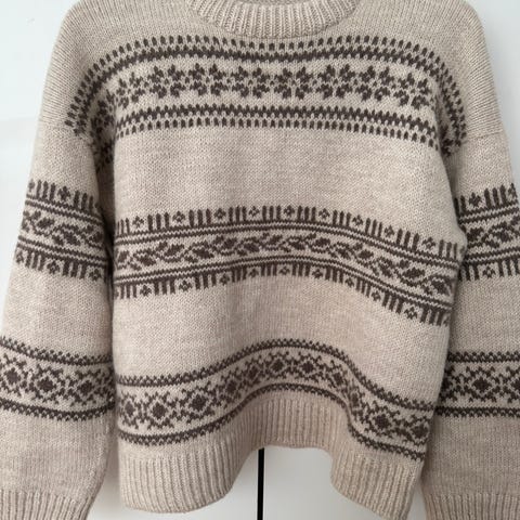 Ny og flott, Harriet genser, mønster har design fra fra Lene Holme Samsøe Le Knit, Genseren er strikket i sterk garn (merinoull / alpakka blanding ) Genseren har en ca str M ( ev litt stor str S). Hel lengd fra hals ca 64 cm Arm lengde ca 42 cm Vidde, målt under arm, ca 46 cm.