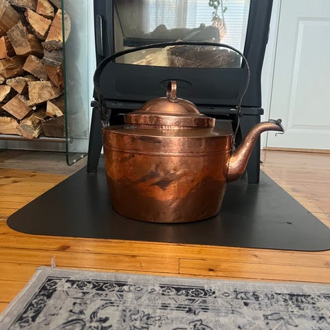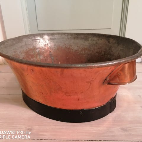 Gedigen kjele med fin patine. 45x25 cm. 10-12 liter.