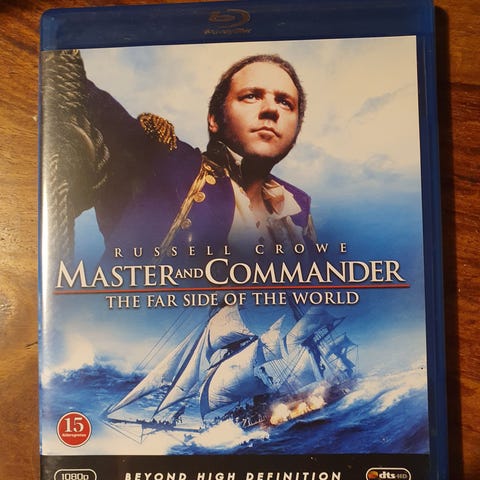 DVD av filmen 'Master and Commander: The Far Side of the World'. Filmen har en aldersgrense på 12 år og inneholder et kart over England. Skuespilleren Russell Crowe spiller hovedrollen. Perfekt for de som er interessert i historiske eventyrfilmer.