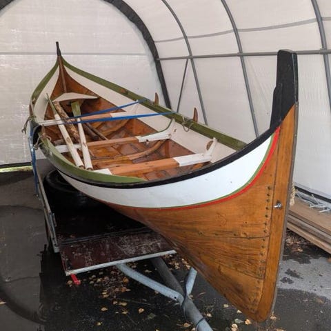 Grei gammel robåt. Medfølger 2 stk årer. Har en Johnson 4 hk motor som kan medfølge for 1000,- om båten kjøpes. Båthenger er solgt