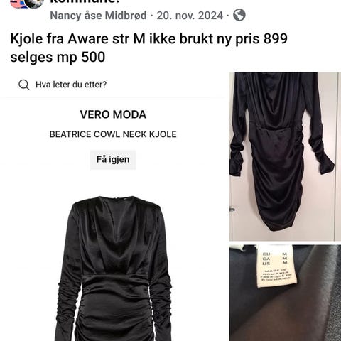 Ubrukt sort foret kjole fra Vero Moda i str M med regulerbare skulderstropper og strikk i ryggpartiet for god passform. Kjolen har flatterende fasong rundt magepartiet.