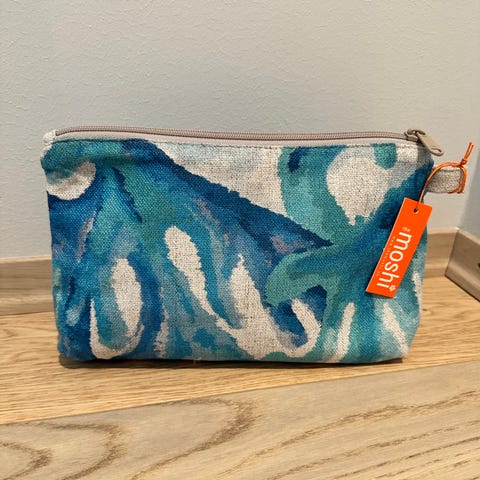 Ene har Biotherm utenpå ved glidelås, den lyse har det som print inni