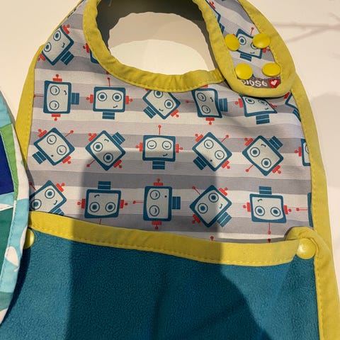 Kjøpt I Spania, håndlaget sett i veldig god kvalitet. Koseklut/tørkeklut, tuttesnor og smekke. Dette er kun brukt en gang og framstår som nytt.