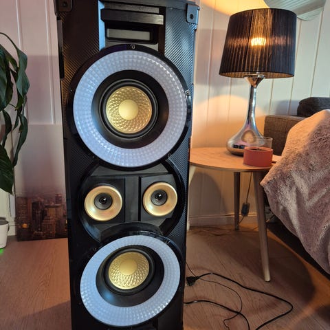 Høytaler spiller høyt med god bass. Føere justeringer og mulighet for tilkobling av div slikt som microfon, usb osv.