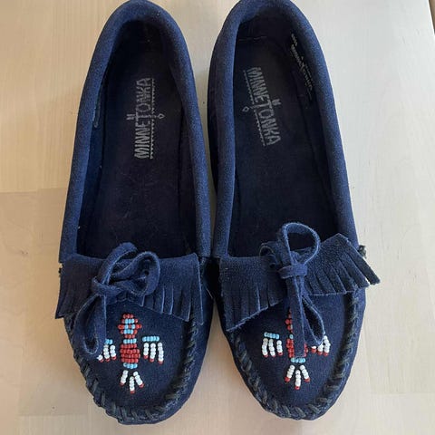 Selger minnetonka mokkasiner, fordi de ikke brukes lenger. Godt brukt. Strls 39