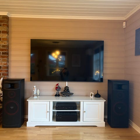 Medfølger 3 stk gode og pent brukte høyttalere, en center og 2 stk front høyttalere og en stk subwoofer.